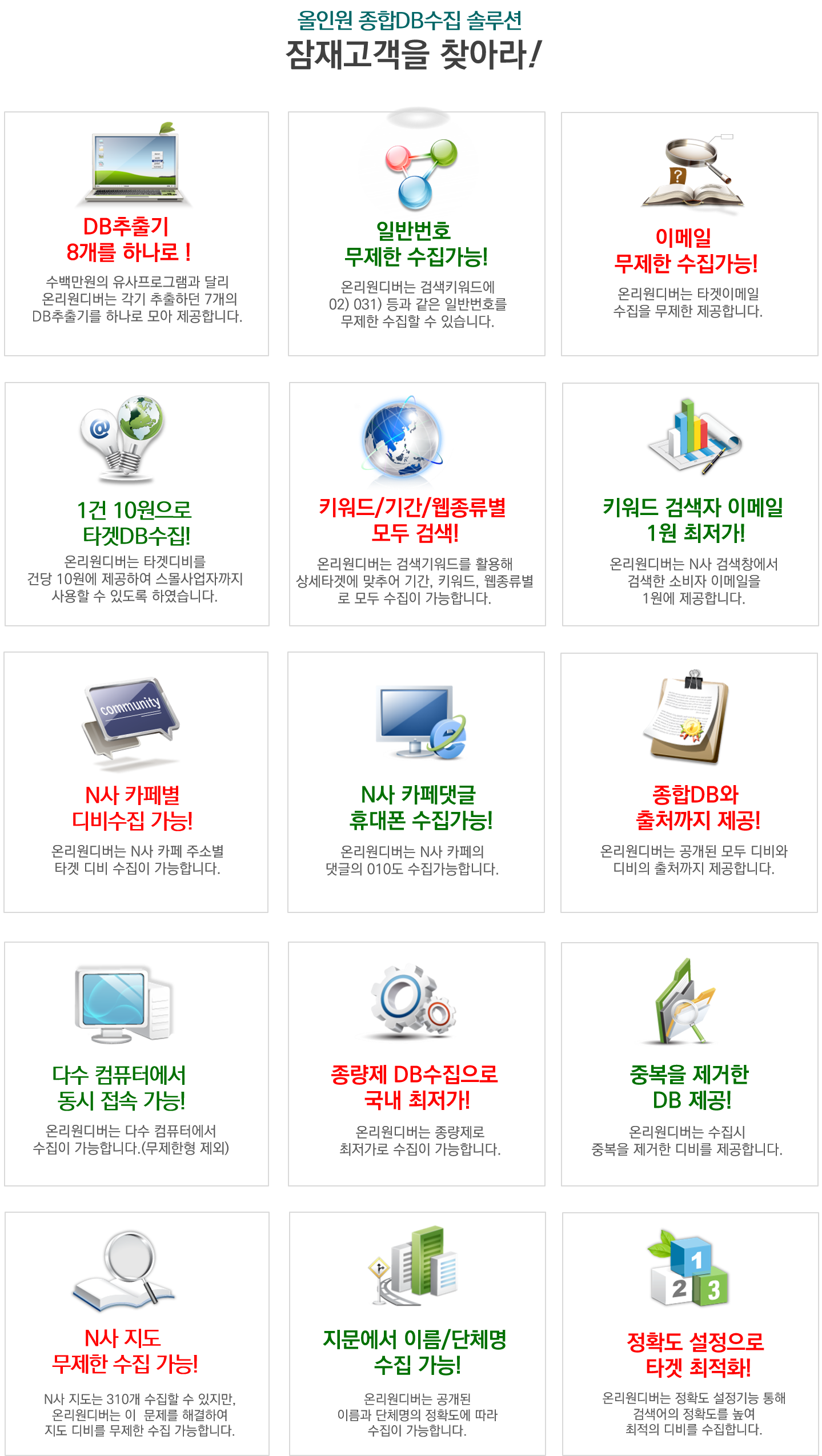 알고리즘을 통해 타겟에 맞는 맞춤 DB로 추출하는 합법적인 프로그램입니다.
